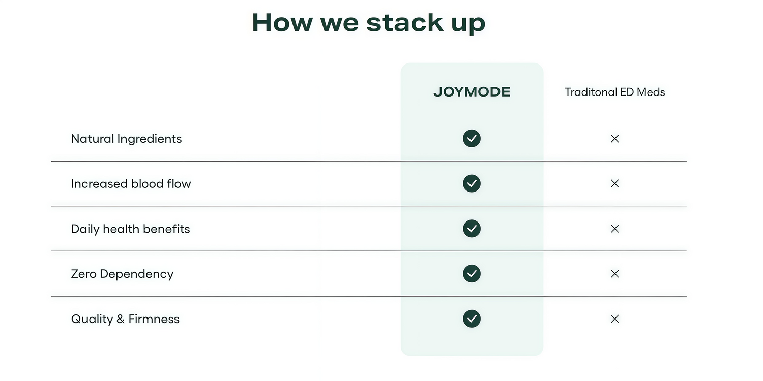 JOYMODE enhances erection strength, quality, and firmness for unforgettable nights.